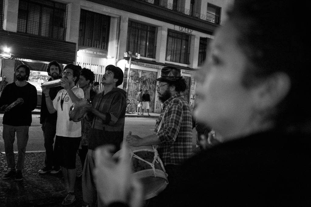 A noite terminou no largo Paissandú, junto ao boteco Estrela, com todos a dançar, a beber chope e a bater papo. Num cenário escuro e quente. Um prédio alto em ruínas, grafitado e uma igreja com mendigos a dormir à porta. Mas nada disto apagava a alegria do povo brasileiro e a minha sensação alegre de voltar a casa.